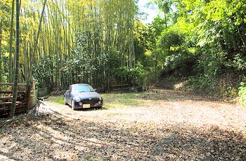 古民家の手前右手に竹林に囲まれた空地がありますので、そこに駐車下さい。