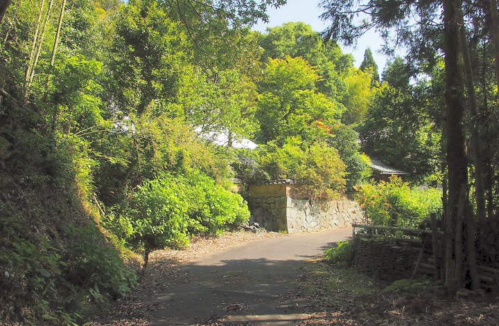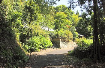クリーンセンター、斎場を通り過ぎると辻堂があります。辻堂を過ぎて直ぐに、狭いですが左手に急坂のアスファルト舗装道があり、それを登っていくと土壁のある古民家が現れます。