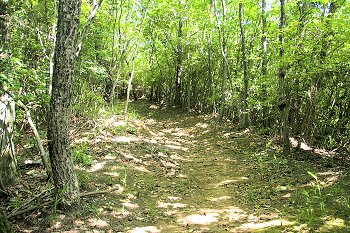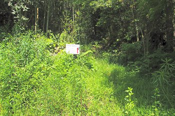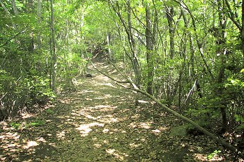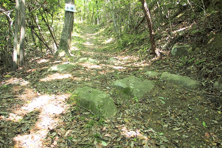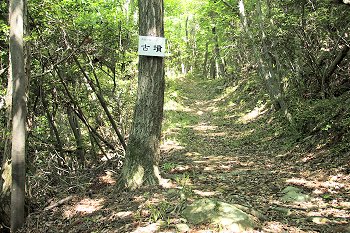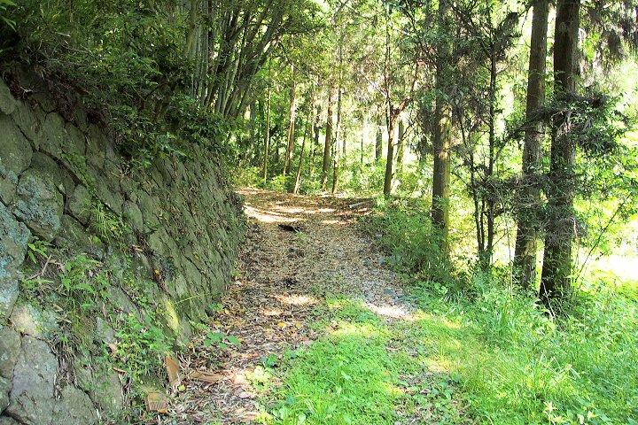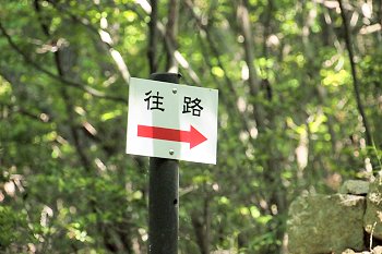 古民家を過ぎると舗装がなくなりますが、道なりに100m程行きますと見学道入口の看板があります。