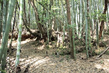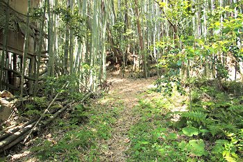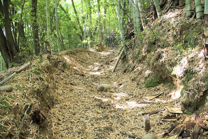 まずは竹藪を二分します落葉の積み重なった山道を暫く歩行です。