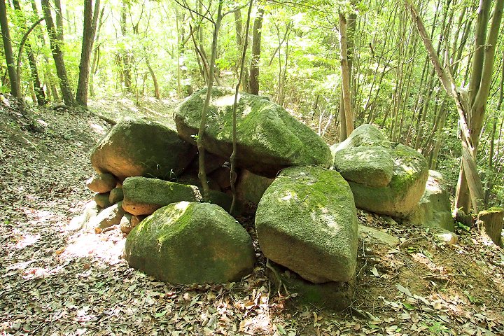 そして、この古墳の少し先にも古墳が…数個の石が囲むような形で存在です。「古墳」の案内標識がありませんと、ド素人のGONsanなんぞは、古墳と気付かず素通りしてしまいますねぇ(^-^)//"