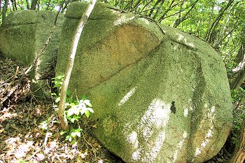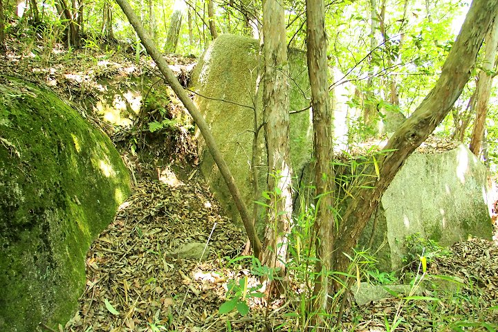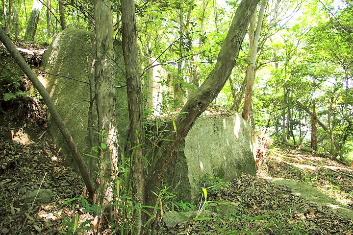 歩きながら周辺の景観をパチリです。立派な石というか岩が結構散在しております。古墳には、こうした石を使用しているのでしょうねぇ(^-^)//"