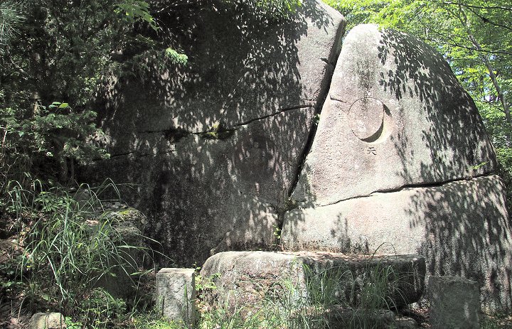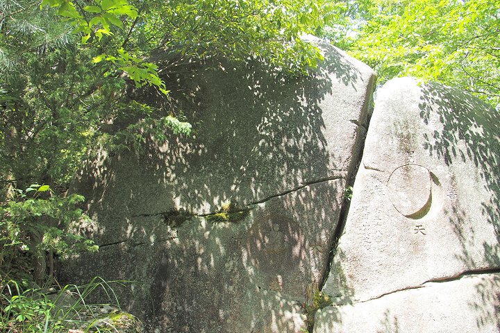 因みに、陰陽石の三日月像と弘法大師像は、大正4年に奈良原西講によって刻まれたものですが、「遥拝石」や「国界石」の位置設定はその時とは思えません。