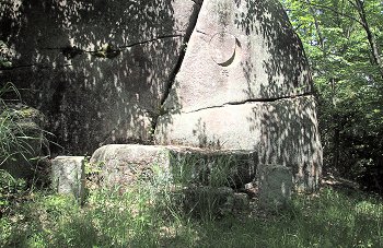 「お月山」については、陰陽石の割れ目から登る冬至の日の出、カシオペア座状に配置された「国界石」、その中心線延長上の北極星的「布衣頭塚」、といった暦や天文的要素を紹介してきましたが、さらにそれを補強するものが見つかりました。