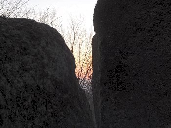 冬至の日の出を拝む場所である「遥拝石」、その上面に陽刻状に1本の線が入っていることを以前にも紹介したことがあります。人工なのか自然なのか定かでありませんが、とにかく不自然であることは確かです。