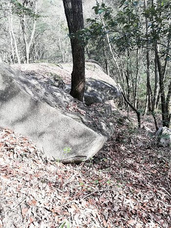 暫く進んで行きますと、途中に大きな石が…この石を通り過ぎて、また暫く進行です。