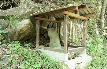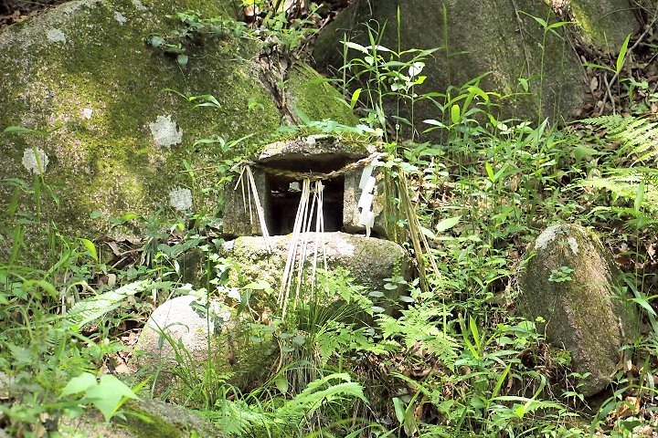 そしてまた進んで行きますと、祠が…中には石が祀られておりました。男性のシンボルにも見えますけど…