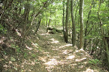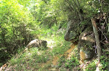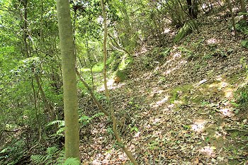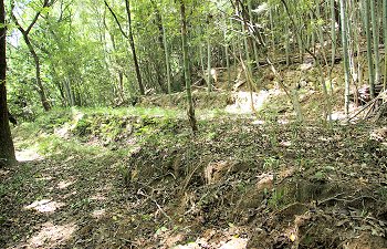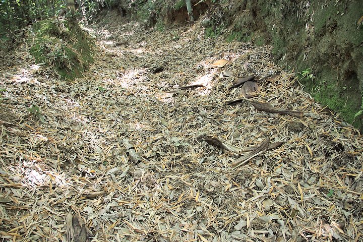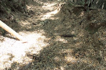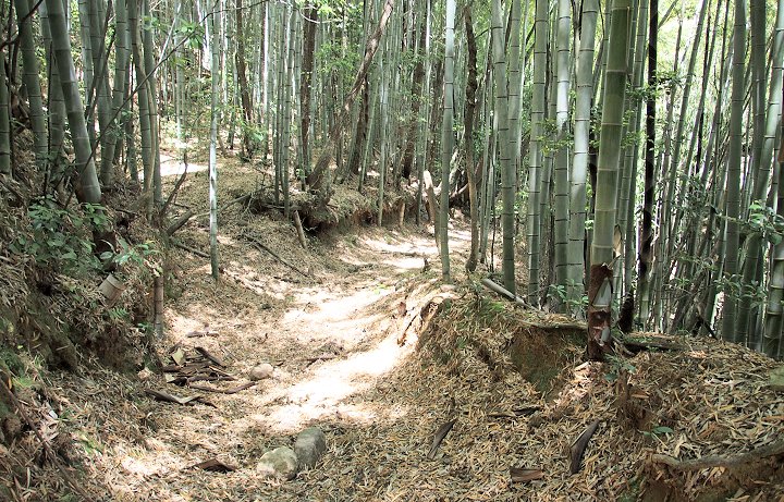 急に、一転、この道に平行に竹藪の中を山の上方向に爆走です。