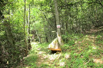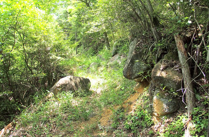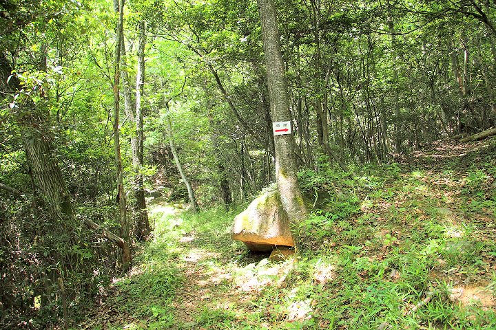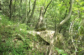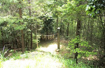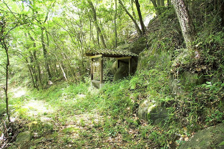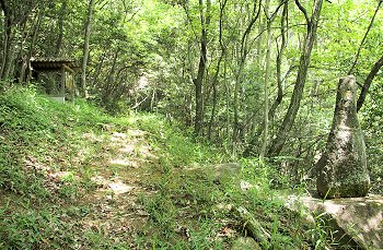 この石柱を振り返りながら進んで行きますと、「←復路 ↑磐座」の案内標識が…このまま直進しますと、こんな「磐座(虚空蔵菩薩)」に辿り着きますのでしょうけど、今回は「←復路」に向かいます事に。