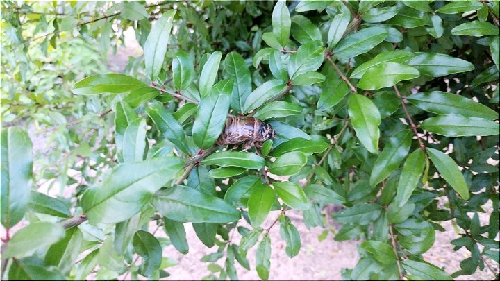 「セミ」と言いますと、つぃ先日も、脱皮直前のセミをザクロの枝に置き、夕食を終え、再度、確認に行きますと、既に移動しいませんでした。