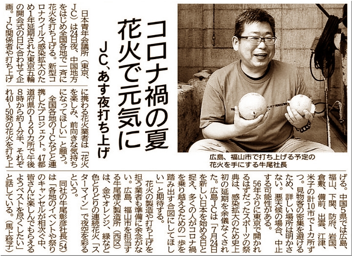 昨日の中国新聞sanの朝刊に、今夜の花火打ち上げの記事掲載が(^.-)☆