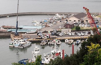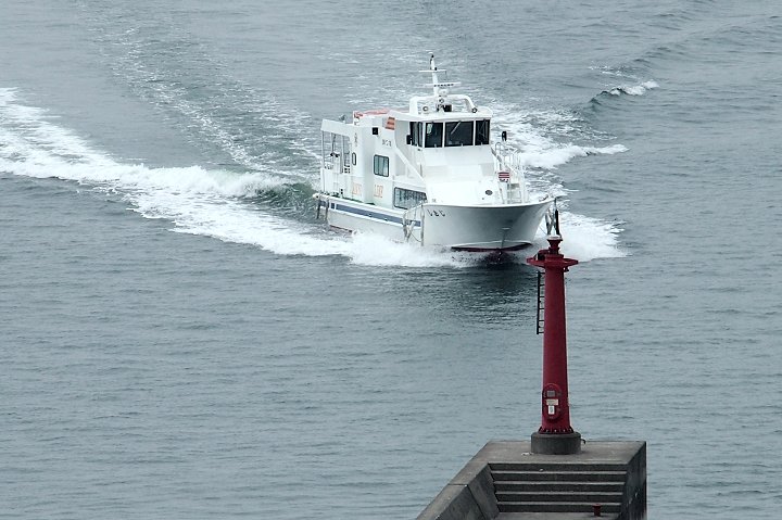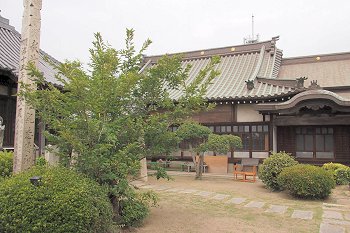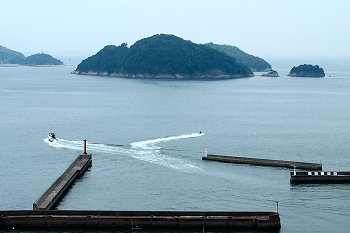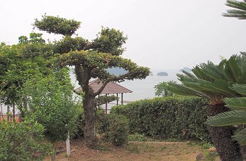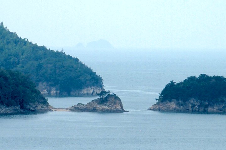 神島のちょうど南側・外浦の町並みを抜けると、小高い山の中腹に石段が続く。山門が見えた時点で振り向くと、まさに絶景である。瀬戸内海に浮かぶ笠岡諸島の島々の問を縫うように航跡を残し連絡船や貨物船が行き交う。この笠岡諸島を見守るように建っているのが月照山日光寺である。