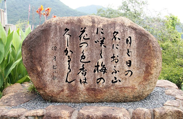 『月と日の 名におふ山に 咲く梅の 花の色香は 久しかるらん 僧 月照の歌』と…