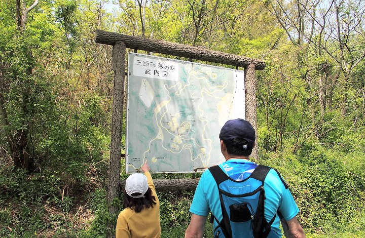 標高は、445mで二等三角点があります。山頂付近は、いこいの森として整備され、桜の名所です。
