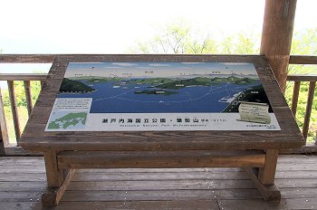 標高445メートルで、頂上からは眼下に瀬戸内の島々が一望できる。はるかに四国連山をも望み、美しい瀬戸の海に浮かぶ無数の島々は、多島美のパノラマを満喫させてくれる。