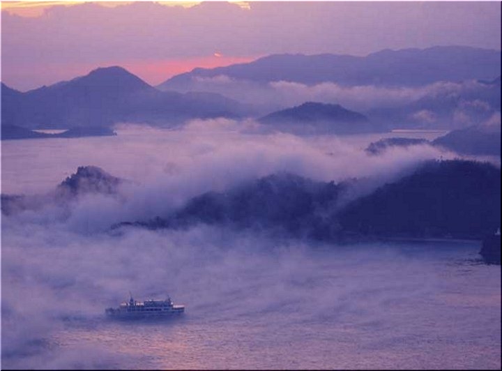 早朝の風に流される海霧のベールが、海に浮かぶ島々を隠したり、ちらりと姿を覗かせたりする様子は、一時も目が離せません。海霧が移動するのにあわせてどんどん目の前で景色が移り変わっていくので、すっかり日が昇るまで、時を忘れて見入ってしまうことでしょう。