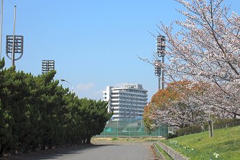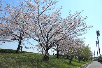 テニスコート・プールと土手の間の通路を福山市民球場までヤッて来ますと、今度は土手を引き返しです(^.-)☆