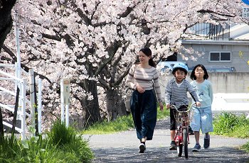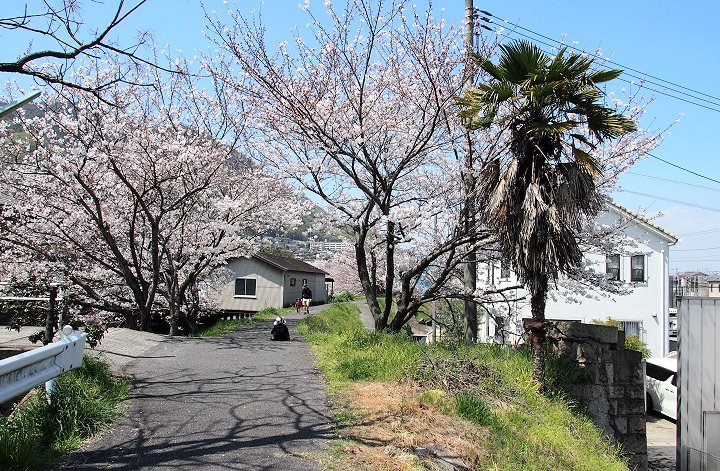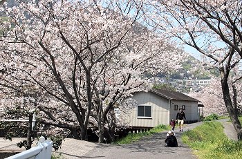 そして、鞆鉄道の昔の鉄橋跡付近で、振り返ってサクラを撮ろうとしましたら、お子様お二人を連れたご家族が…あぁ、やっぱりGONsanのみでも無かったようであります。楽しそうにお父さんとお子様が(^-^)