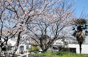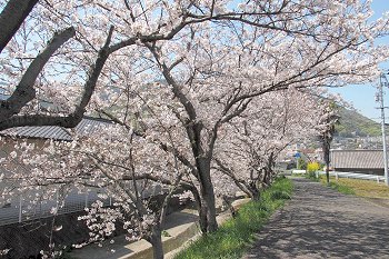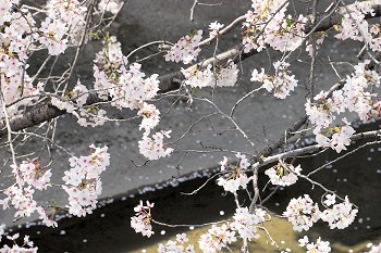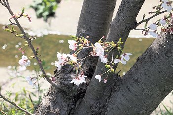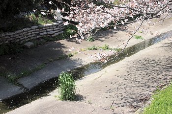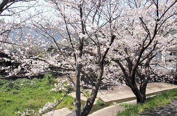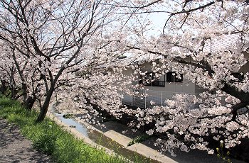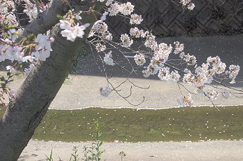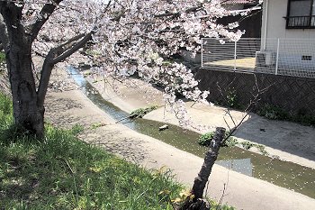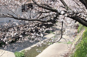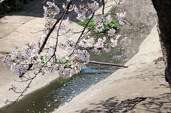 水呑川土手沿いのサクラは、大概、川側に枝が広がっています。