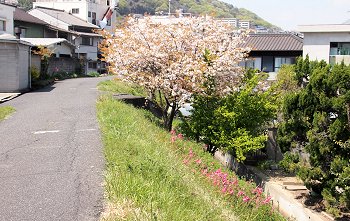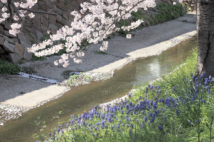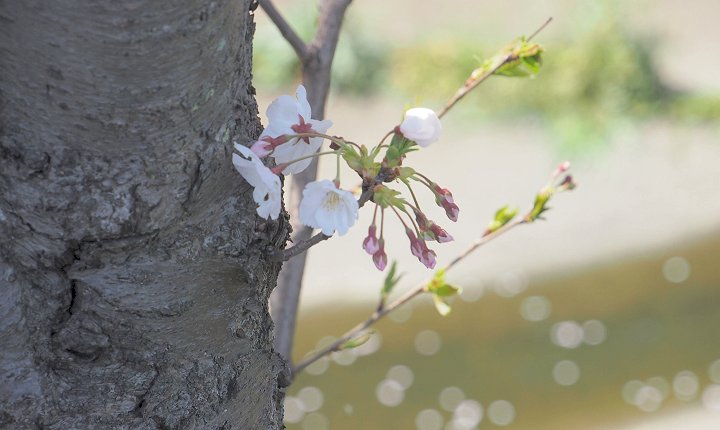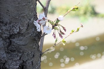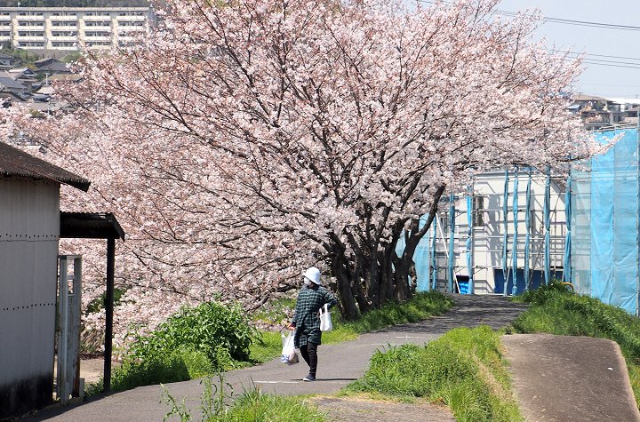 買い物袋を両手にしておられますから、ご自宅までの帰路を遠廻りされましての花見となられましたのかも…