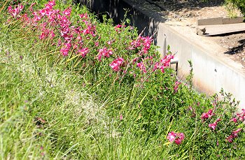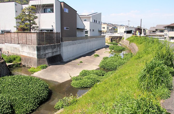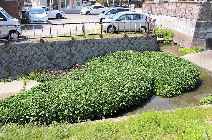 土手道に広がりますと通行の邪魔になりますから切りますのでしょうから、だから、川側に広がっていますのでしょうねぇ(^-^)