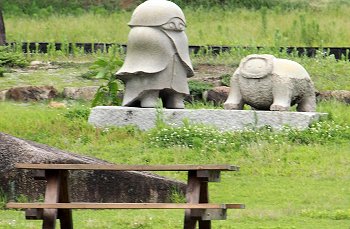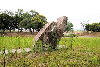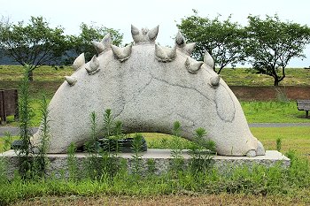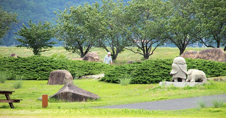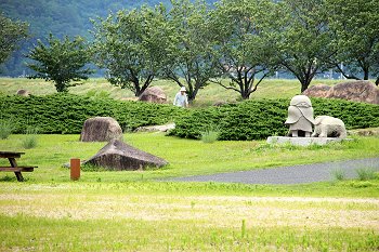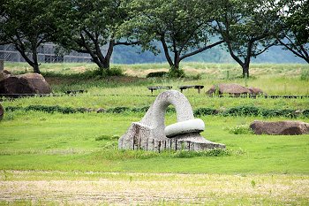グラウンドゴルフコースを通り過ぎますと、芝生広場が広がりますけど、ここにも彫刻の作品が散在です(^.-)☆