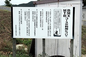 スタート・ゴール付近までヤッて来ましたら、『BMX・MTBコースの利用について』の案内板が…