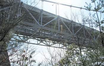 その後、輸送車両の大型化や増加する交通量に対応するため、流通の円滑化や交通安全の確保などを目的として、南側にトラス橋の歩道が併設されることとなり、平成2年に完成した。