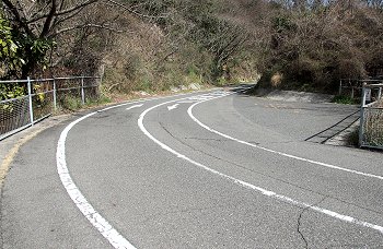 緑のカラー舗装が歩行者道で、上下線非分離の対面通行です。縁石で区切ってありまして、自転車と125cc以下の2輪車も通行可能です(^.-)☆