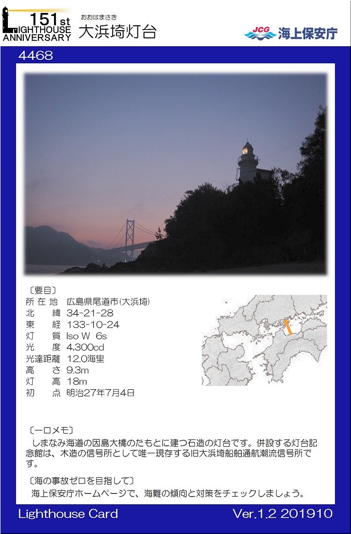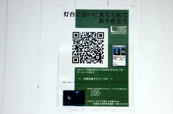 灯台のドアには、「2次元コードを読み取ると『大浜埼灯台』のカードがダウンロードできます。」との記載ですけど、「灯台カード」とは何なんでしょうねぇ〜