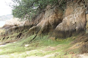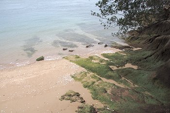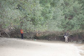 海辺に下りてみますと、検潮所方向に何やら話し声が…