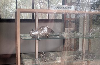 記念館の中には、灯台で使用されておりました「木製電話機・レンズ・バッテリー・浮標用灯具・電球」が展示されておりました。