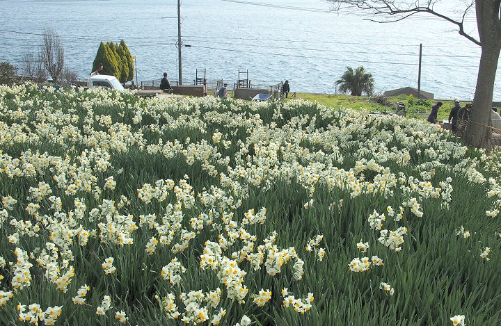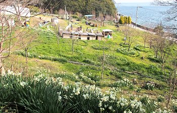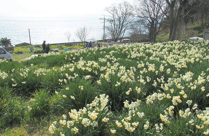 穏やかな瀬戸の海を臨みますこの「やぶ椿と水仙の里」…温かい日差しも加わり、ノンビリと散策が楽しめます。少し離れた所から眺めておりましても、あの、人懐っこい山羊san達にも癒やされますネ(^-^)/"