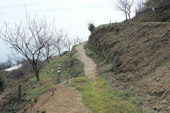 んっ!?…十三仏手前の山際の歩道の一部が、いつの間にか整備されてキレイになっておりました。まだ、整備された直後のようにも見受けられます。