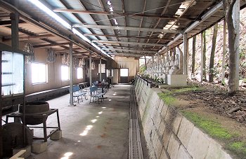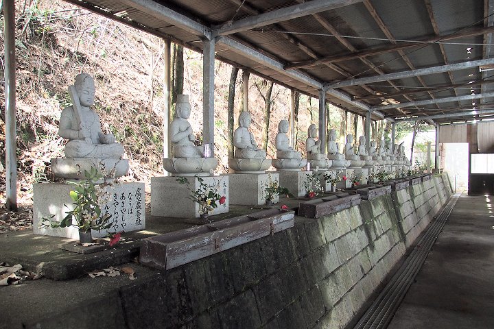 ・十三仏霊場 ゴルフの練習場のような建物に十三体の石仏が。(広島県福山市田尻町)