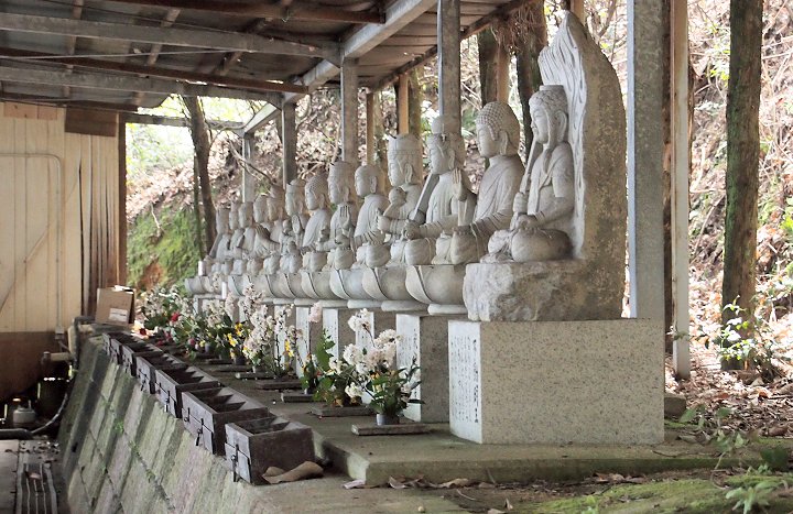 建物は片側が吹き放ちになっている。そしてその吹き放ちになった山側に十三体の石仏が並んでいた。