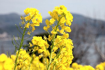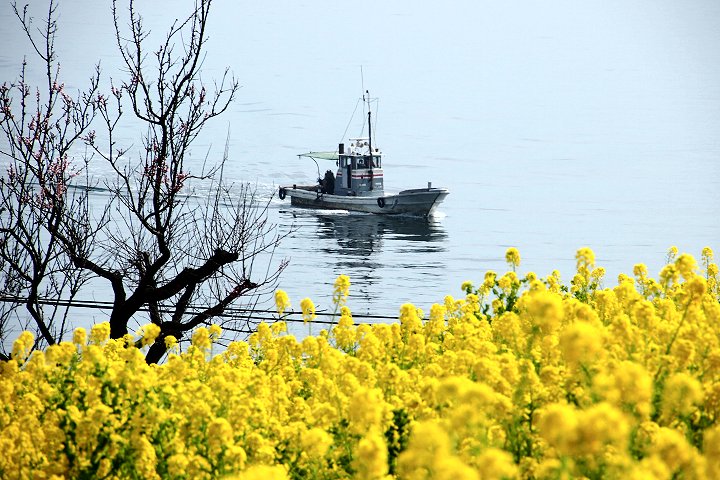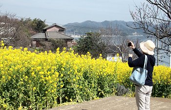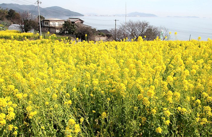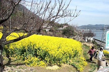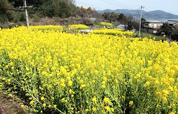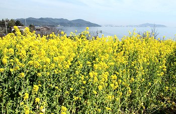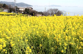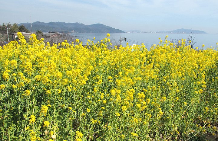 全国的に有名になった「鞆の浦」のお隣りに田尻町という海に面した町があるのですが、毎年3月には「菜の花まつり」が開催され、海の見える素敵は花畑が出現します。