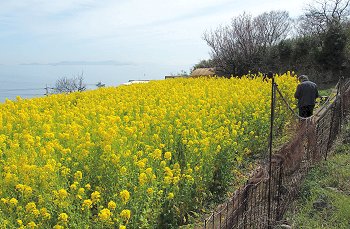 もちろん、内容も素晴らしく、特に向こう側に広がる海の景色と菜の花の組み合わせがとてもマッチするんです。菜の花畑は、段々状になっています。ぜひ上のほうから見下ろしてみてください。