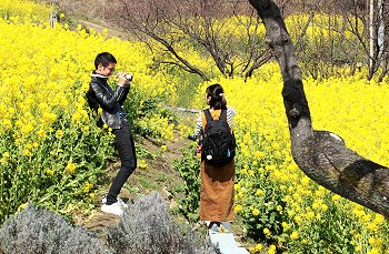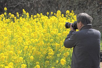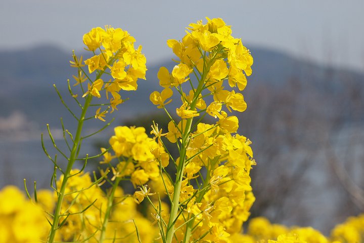 3月8日(日)には「菜の花まつり」も開催されます。少し屈んで、見上げるように菜の花を見るのもおすすめです。