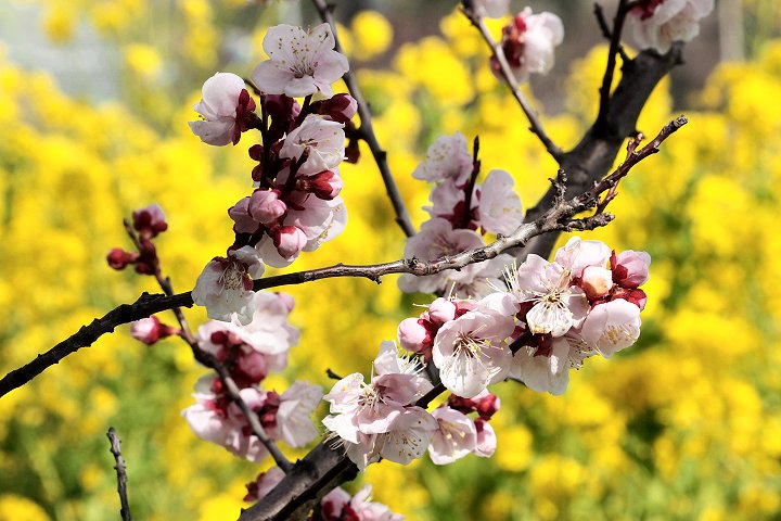 菜の花畑の一角には、杏が開花をしておりました。大概、つぼみ状態が、ここまでの道中では多かったのですけど、菜の花畑は温かいのかも…満開ではありませんけど、開花しておりました(^-^)/"