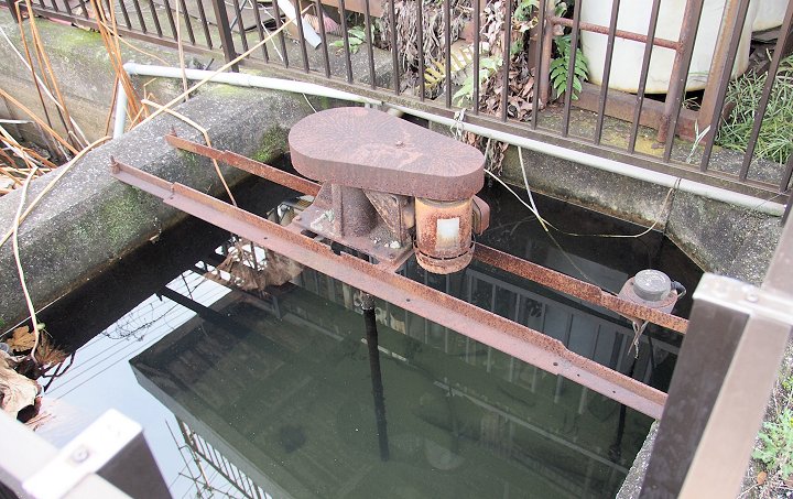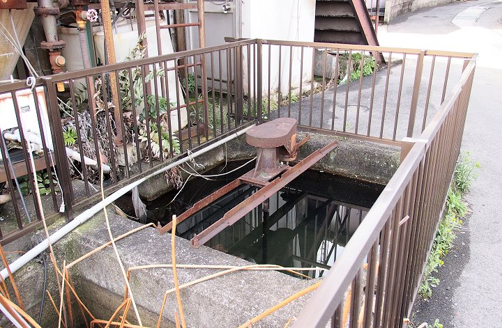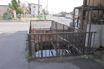 山からの水が谷を通じて海にと流れて行きますのでしょうけど、海に流れ出ます直前のバス通りに面しました谷川の、年期の入りましたこの設備。老朽化に向かっていますのでしょうけど、現役で使用されていますようにも見えますし…