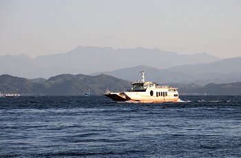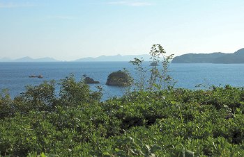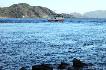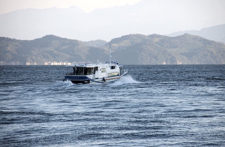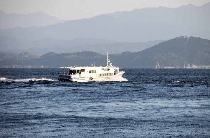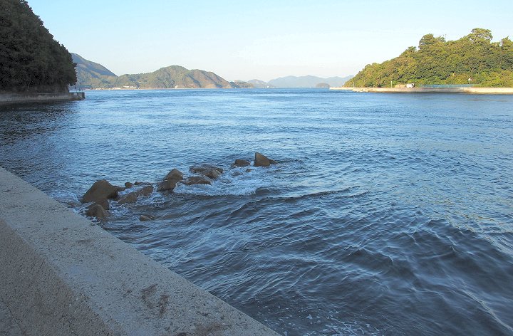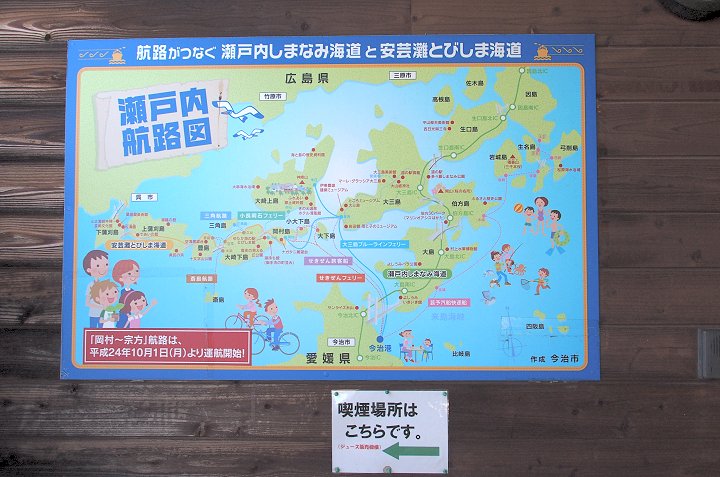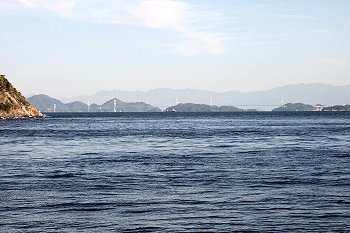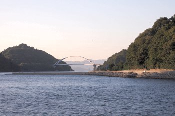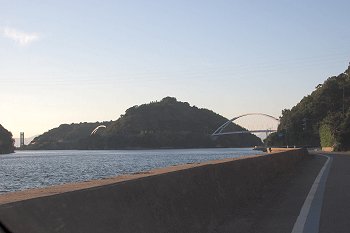 暫し「であいの館」からの眺望を楽しみますと、日が暮れませんうちに岡村島まで走行です。