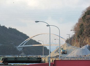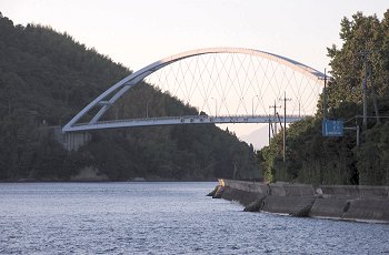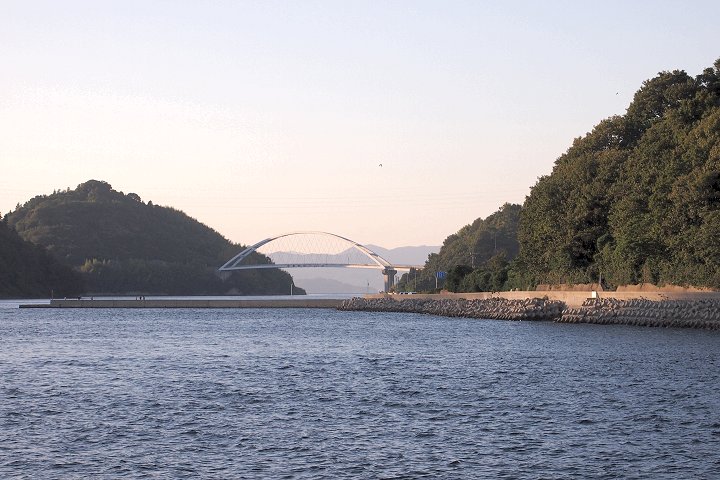 この橋の中間が県境であり、道路にそれが表記されている。なお海上の県境を跨ぐ農道橋としては、この橋が日本唯一のものである。この橋の下が大崎下島御手洗港と大崎上島沖浦漁港を結ぶフェリー航路である。