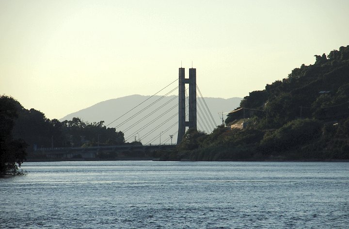 岡村大橋に到着しますと少しだけ停車。ササッと何枚かパチリです。この橋の向こうは広島県、手前は愛媛県ですネ。