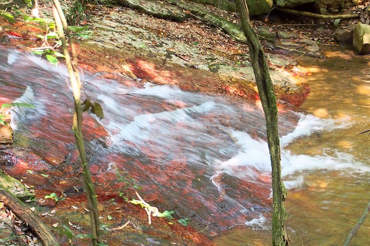 正面の赤茶っぽい岩に流れますのが『白廉の滝』で、左側が『孤渡の滝』。兄弟滝のようであります(^.-)☆