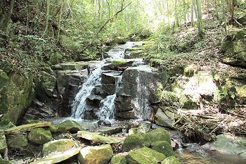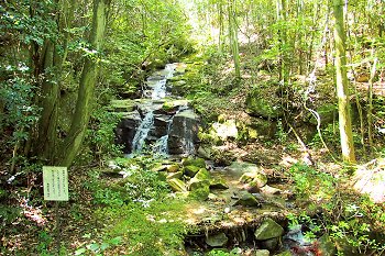 矢掛から県道35号線を北上し、井原市美星町宇戸方面へ烏頭川沿いに約500m行き、そこから右側の谷に下りて、川沿いに約300m歩くとこの滝を見ることが出来る。橋の上から、左に高さ15mの脇滝、正面に高さ20mの本滝と、同時に2つの滝を見ることが出来る。本滝は急流の滝ですが幅も広く、白い簾のような綺麗な滝です。