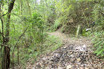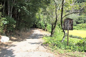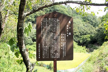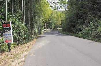 『白廉の滝・孤渡の滝』を後にしまして、鬼ヶ岳ダム方向に上がって行きますと、途中に「鬼ヶ嶽」の案内表示板が…