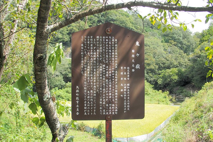 の約4kmに渡る、地形の変化に富んだ峡谷をいう。この付近には花崗岩が露出し、川底は平坦面があるかと思えば、滝や滝壺、甌穴などがみられ、美しい渓谷をつくりだしている。昭和47年に鬼ヶ嶽ダムが完成し、渓流の多くが水没したが、人造湖の出現により荒々しい景観に加えて穏やかな一面を見る事が出来るようになった。