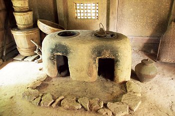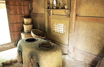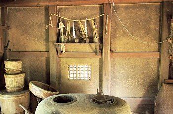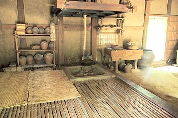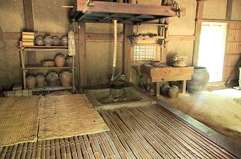 一棟式の民家が普及すると、火や水を使う炊事場は土間、とくに寝所は湿気を避けるためには床、という区別がはっきりみられる。