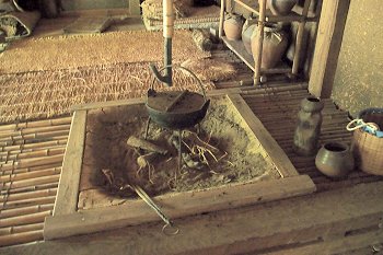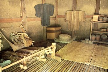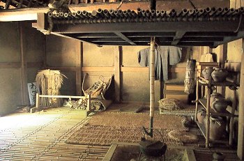 屋内は、地元に伝わる生活様式と建築材料を加味してのものであったが、大工道具が未発達で板材が貴重な時代、床や壁には竹が使用されたと思われる。それは、現在でも東アジア各地に伝わる様式である。